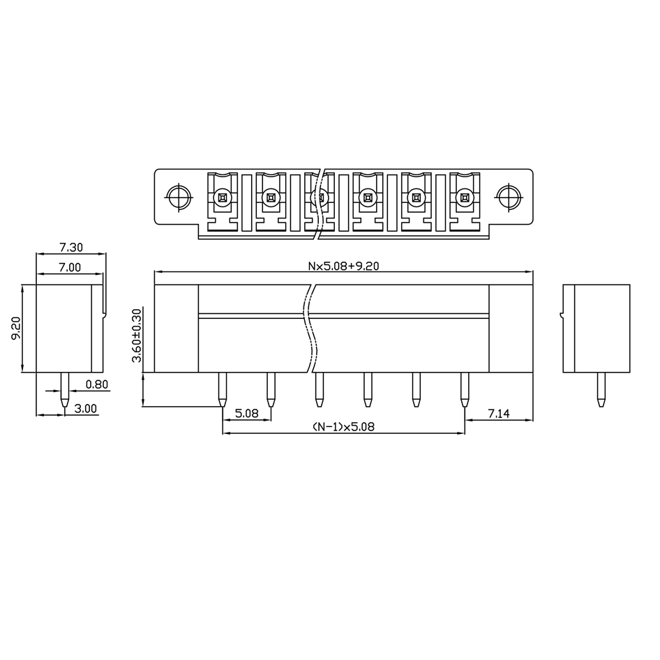 PCB Housing, Cross-sectional rating: 1.5 mm2, Color: Green, Current rating: 8 A, Voltage rating (III/2): 320 V, Contact surface: Tin, Contact type: Pin connector, Number of potentials: 2-24, Number of rows: 1, Number of digits: 2-24, Connections: 2-24, Product family: DB1ERM, Pin pitch: 5.08 mm, Mounting: Wave Soldering, Pin Alignment: Straight Alignment, Pin [P]: 3.4 mm, Number of Pins per Potential: 1, Insertion System: COMBICON DB1EVM, Pin Connector Style Alignment: Standard, Interlock: Screw Fastening, Mounting: Screw Flange, Package Type: Carton Packaging