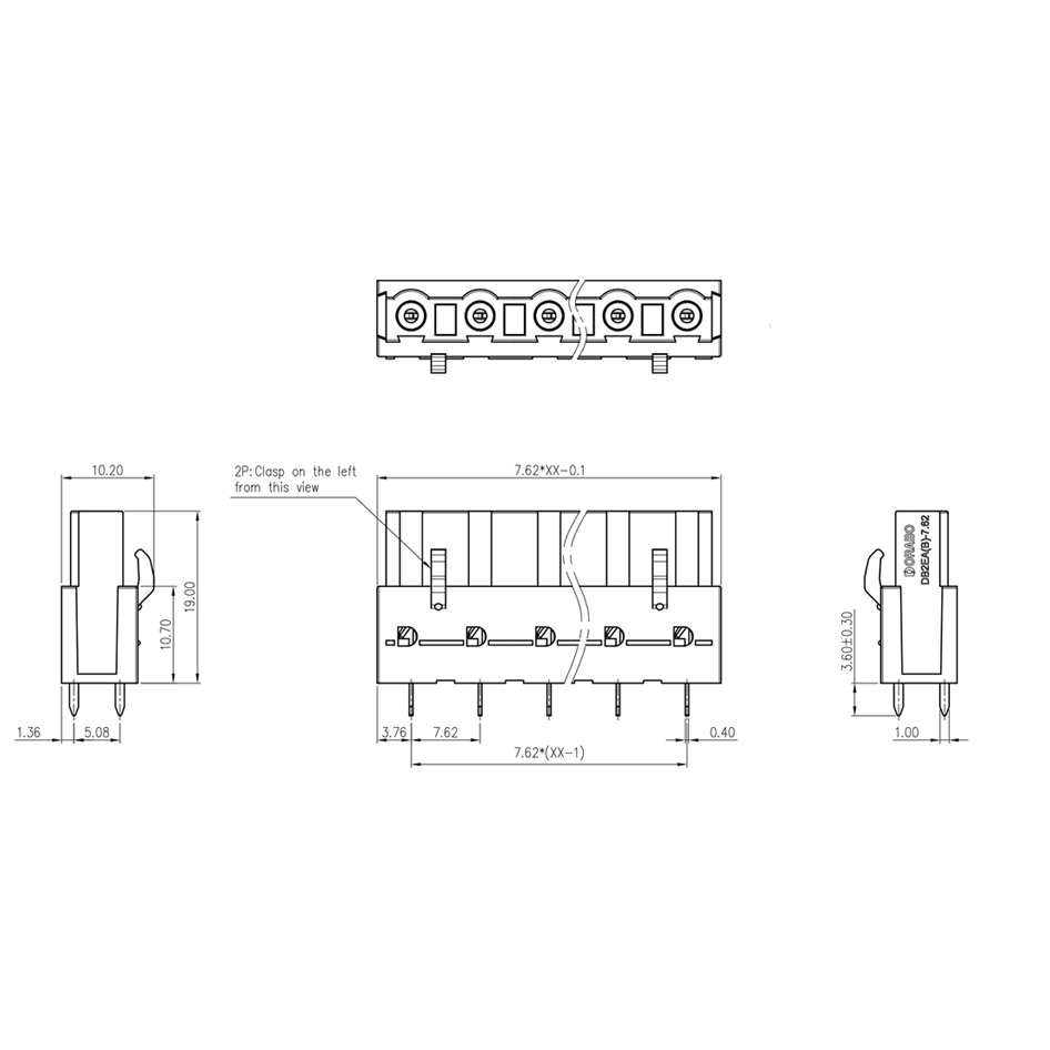 PCB Housing, Cross-sectional rating: 2.5 mm2, Color: Green, Current rating: 12 A, Voltage rating (III/2): 630 V, Contact surface: Tin, Contact type: Hole connector, Number of potentials: 2-16, Number of rows: 1, Number of bits: 2-16, Connections: 2-16, Product family: DB2EB, Pin pitch: 7.62 mm, Mounting: Wave Soldering, Pin Alignment: Straight Alignment, Pins [P]: 3.5 mm, Number of Pins per Potential: 2, Insertion System: COMBICON DB2EB, Pin Connector Style Alignment: Standard, Interlock: Without, Mounting: Without, Package Type: Carton