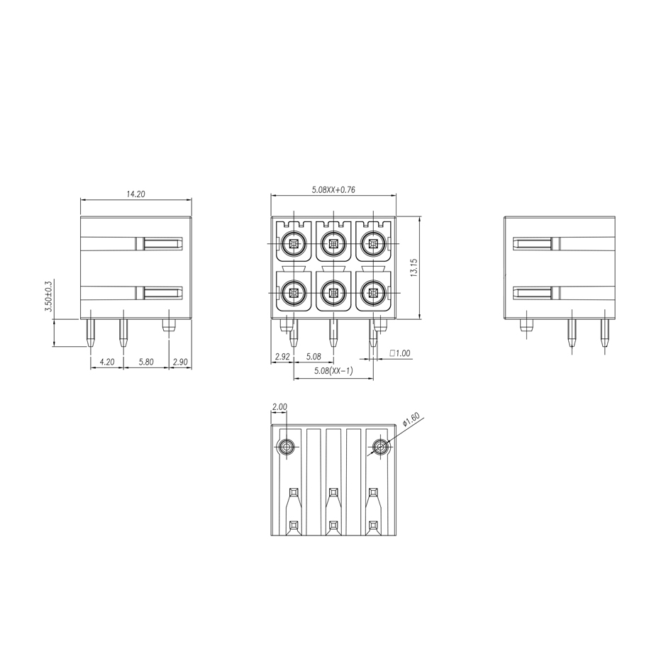 PCB Housing, Cross-sectional rating: 1.5 mm2, Color: black, Current rating: 10 A, Voltage rating (III/2):300 V, Contact surface: Tin, Contact type: Pin connector, Number of potentials: 4-48, Number of rows: 2, Number of bits: 2-24, Connections: 4-48, Series: DB2ERHC, Pin pitch: 5.08 mm , Mounting: Wave Soldering, Pin Alignment: Straight Alignment, Pins [P]: 3.5mm, Number of Pins per Potential: 1, Insertion System: COMBICON DB2ERHC, Pin Connector Style Alignment: Standard, Interlock: Without, Mounting: Without, Package Type: Carton
