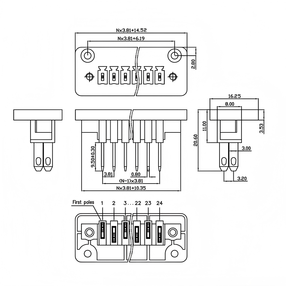 Thru-wall receptacle, Rated cross-section: 1.5 mm2, Color: Green, Rated current: 8 A, Rated voltage (III/2): 160 V, Contact surface: Tin, Contact type: Pin connector, Number of potentials: 2-24, Number of rows: 1, Number of digits: 2-24, Connections: 2-24, Product family: DB2CM, Pin pitch: 3.81 mm, Wiring Style: Solder/Slip Fit, Mounting: Direct Mount, Pin Alignment: Straight Alignment, Solder Pins [P]: 9.4 mm, Number of Solder Pins per Potential: 1, Insertion System: COMBICON DB2CM, Pin Connector Style Alignment: Standard, Interlock: Screw Fastening, Mounting: Screw Flange, Package Type: Carton